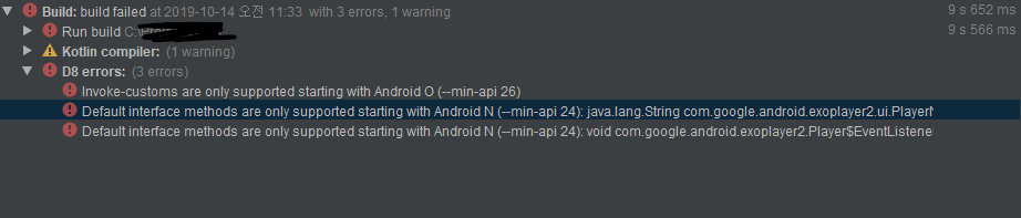 영상 재생을 위한 ExoPlayer를 Implement하는 과정에서 위와 같은 오류가 발생했다.