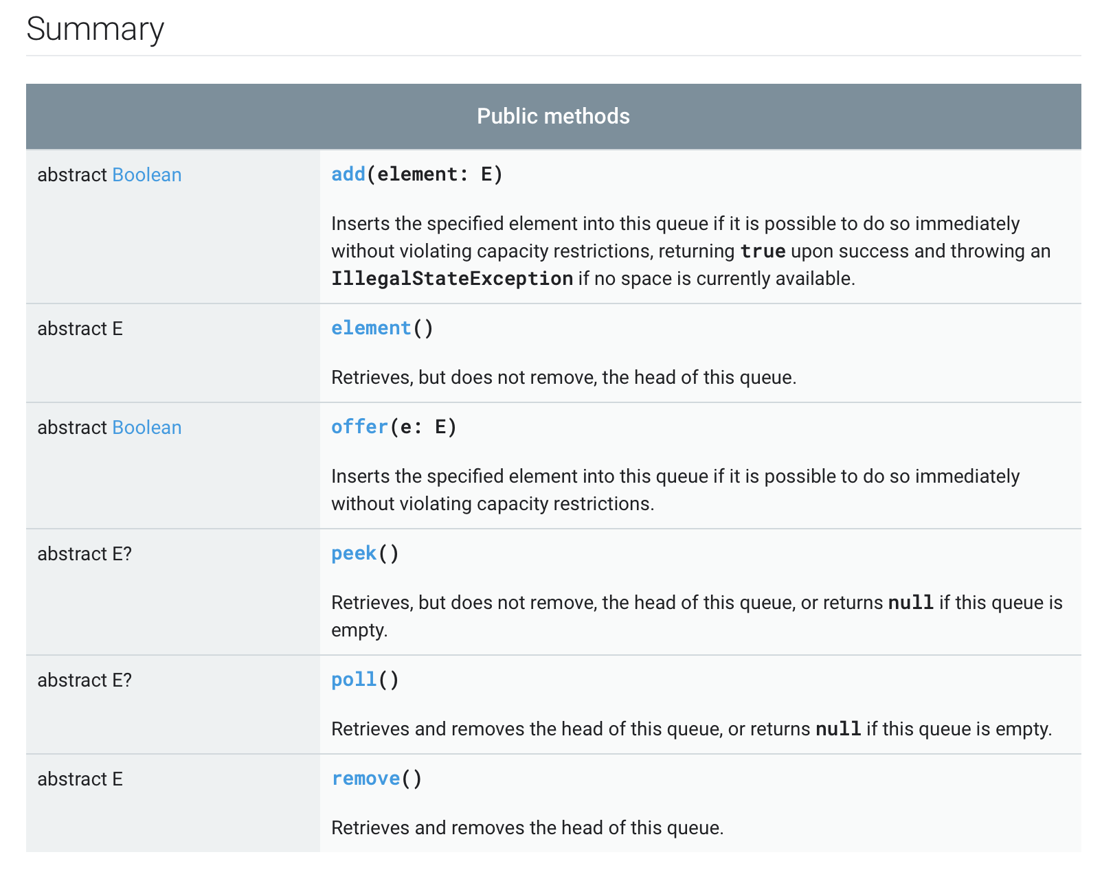 https://developer.android.com/reference/kotlin/java/util/Queue
